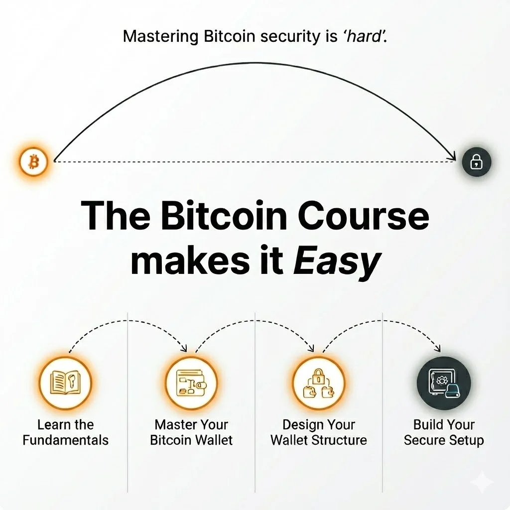 The Bitcoin Course is the antidote. It is a practical, step-by-step security course designed to give you the foundational knowledge AND the skills to secure your bitcoin.